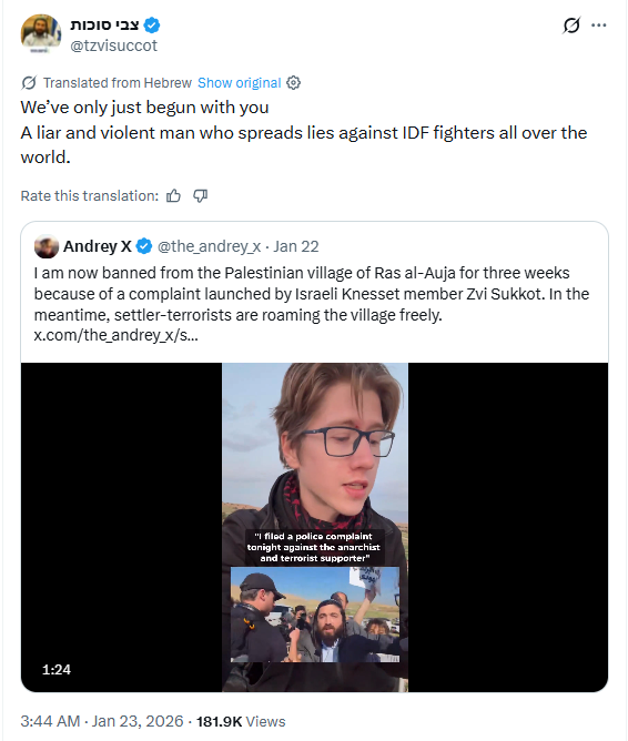 Incitement #96We’ve only just begun with you A liar and violent man who spreads lies against IDF fighters all over the world.