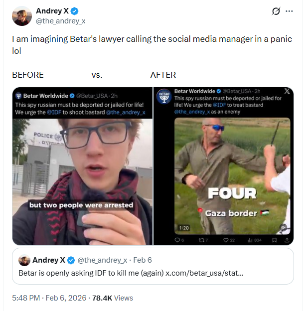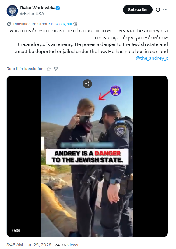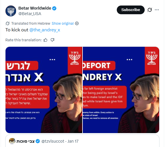 Incitement #98@the.andrey.x is an enemy. He’s a danger to the Jewish state must be deported or jailed
